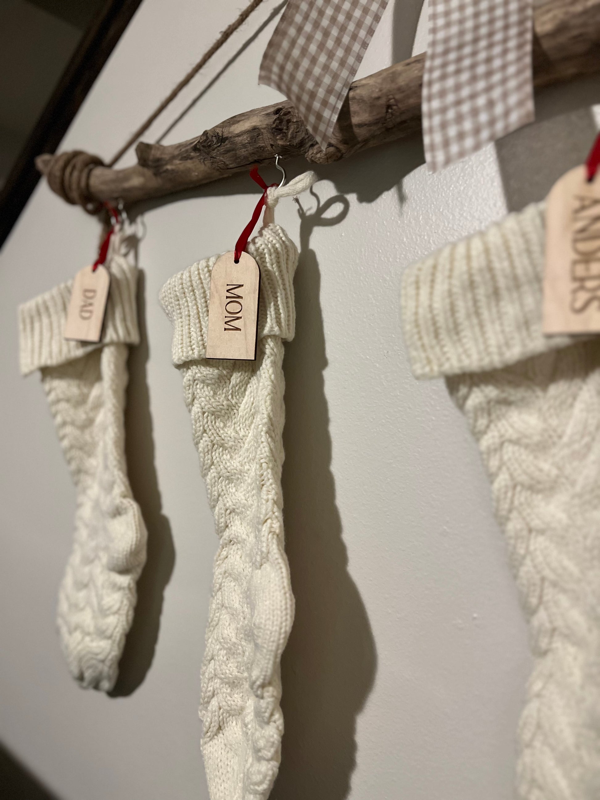 Simple rectangle tags with engraved names for your family Christmas stockings. Please email me the names you would like on the tags.